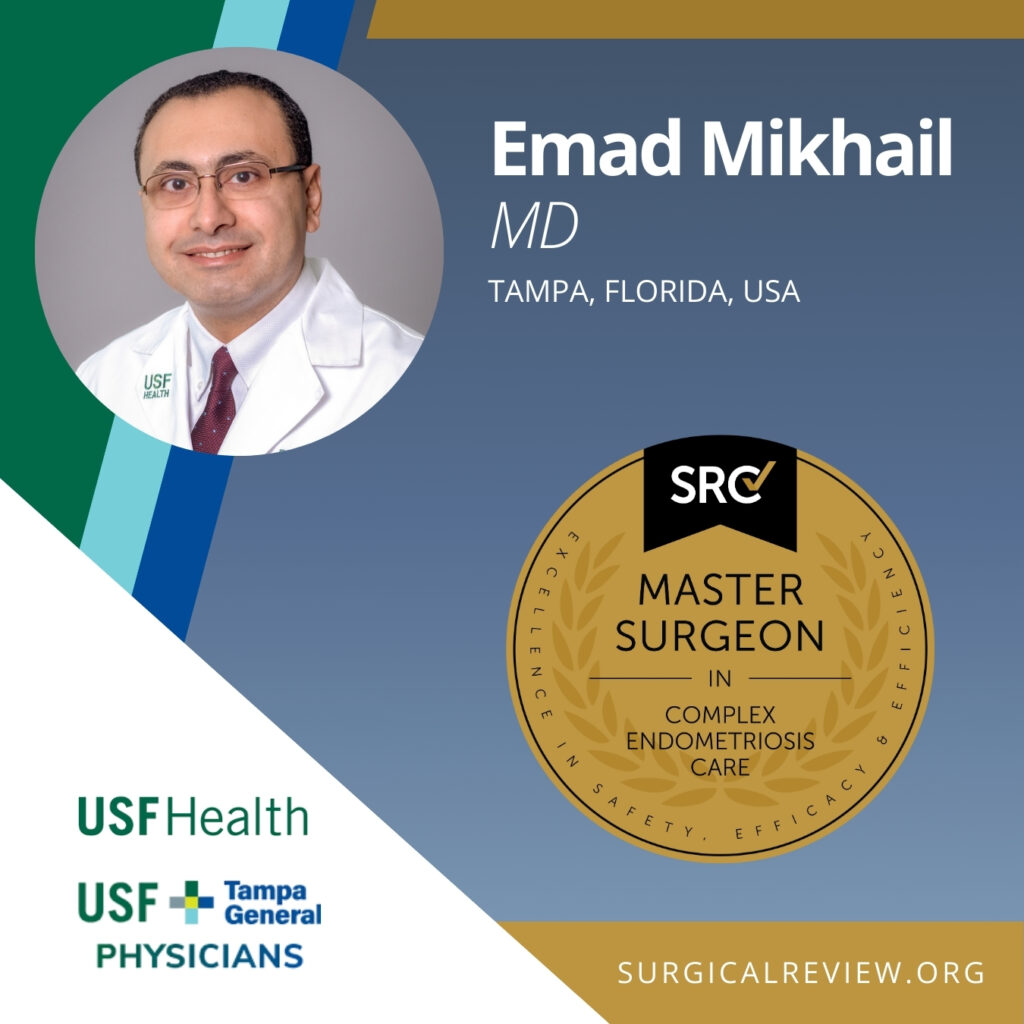 Emad Mikhail, MD has been accredited as an SRC Master Surgeon in Complex Endometriosis Care. Dr. Mikhail practices at Tampa General Hospital and USF Health in Tampa, Florida.