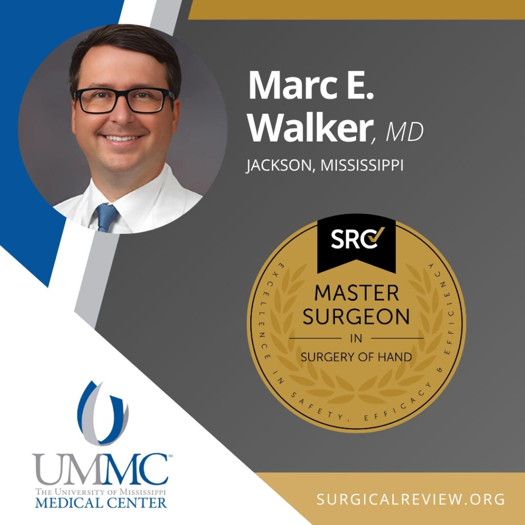 Marc E. Walker, MD has been accredited as the first SRC Master Surgeon in Surgery of Hand. Dr. Walker practices at the University of Mississippi Medical Center in Jackson, Mississippi.