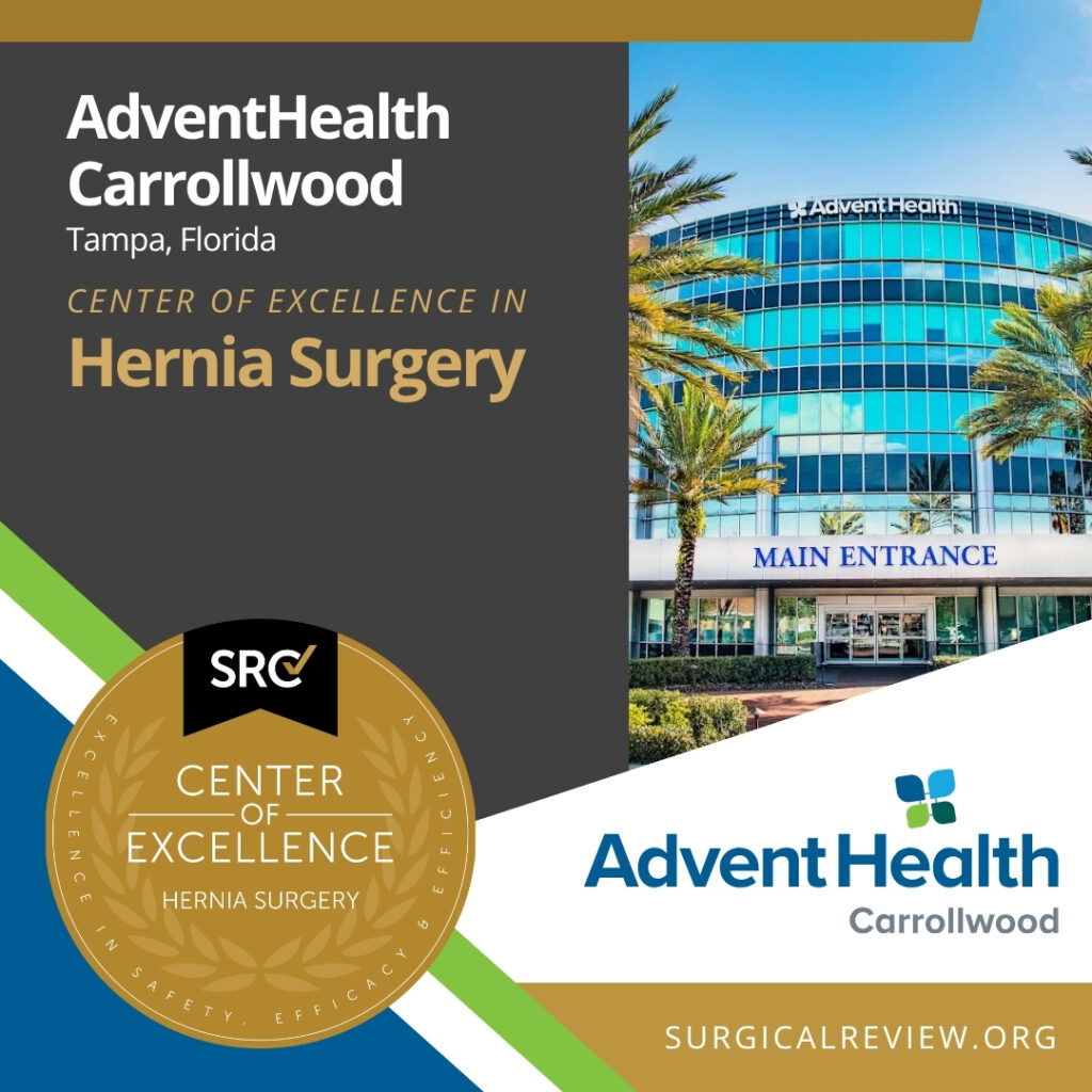 AdventHealth Carrollwood in Tampa, Florida has been accredited as an SRC Center of Excellence in Hernia Surgery.