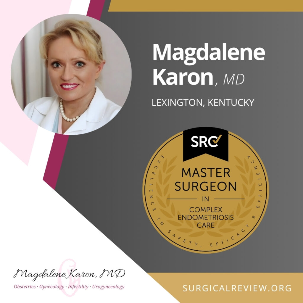 Magdalene Karon, MD has been accredited as an SRC Master Surgeon in Complex Endometriosis Care. Dr. Karon practices at CHI Saint Joseph East Hospital and Magdalene Karon, MD in Lexington, Kentucky.