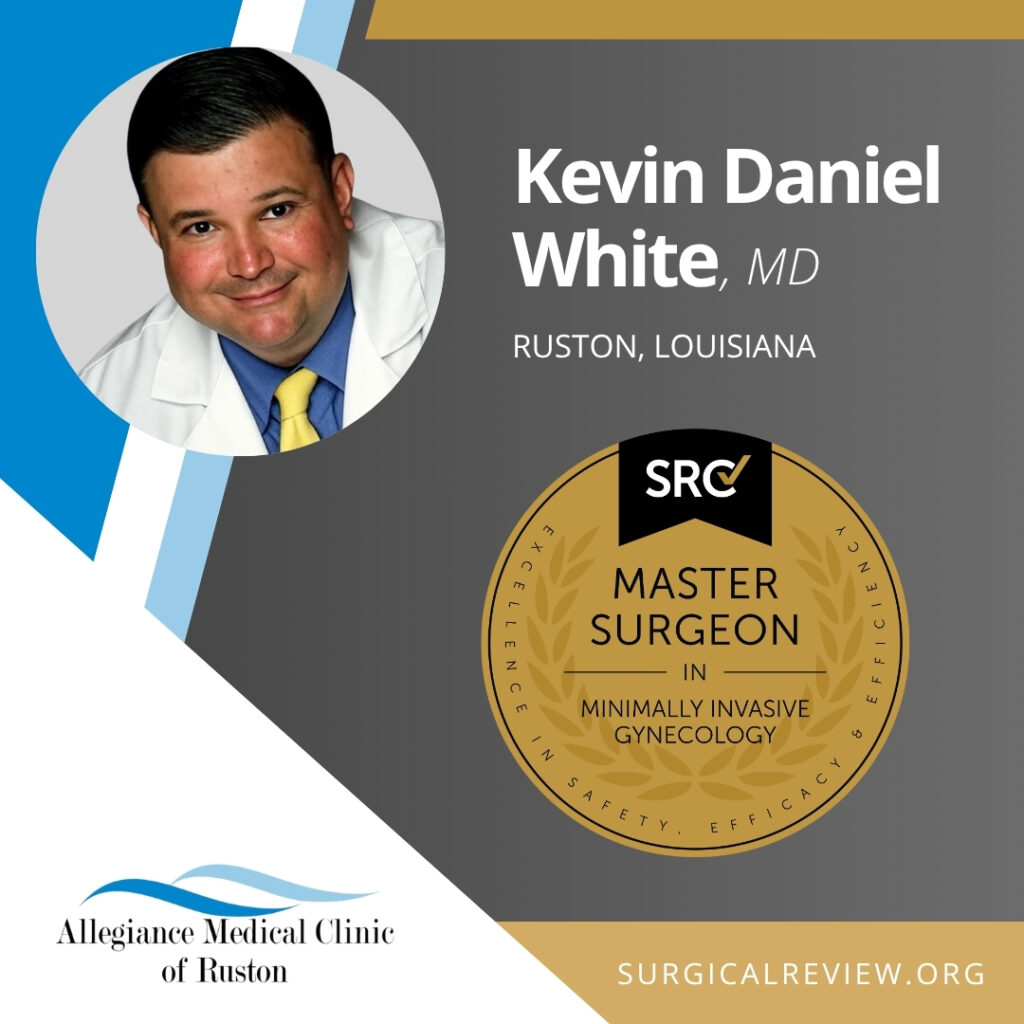 Kevin Daniel White, MD has been accredited as an SRC Master Surgeon in Minimally Invasive Gynecology. Dr. White practices at Allegiance Medical Clinic of Ruston in Ruston, Louisiana.