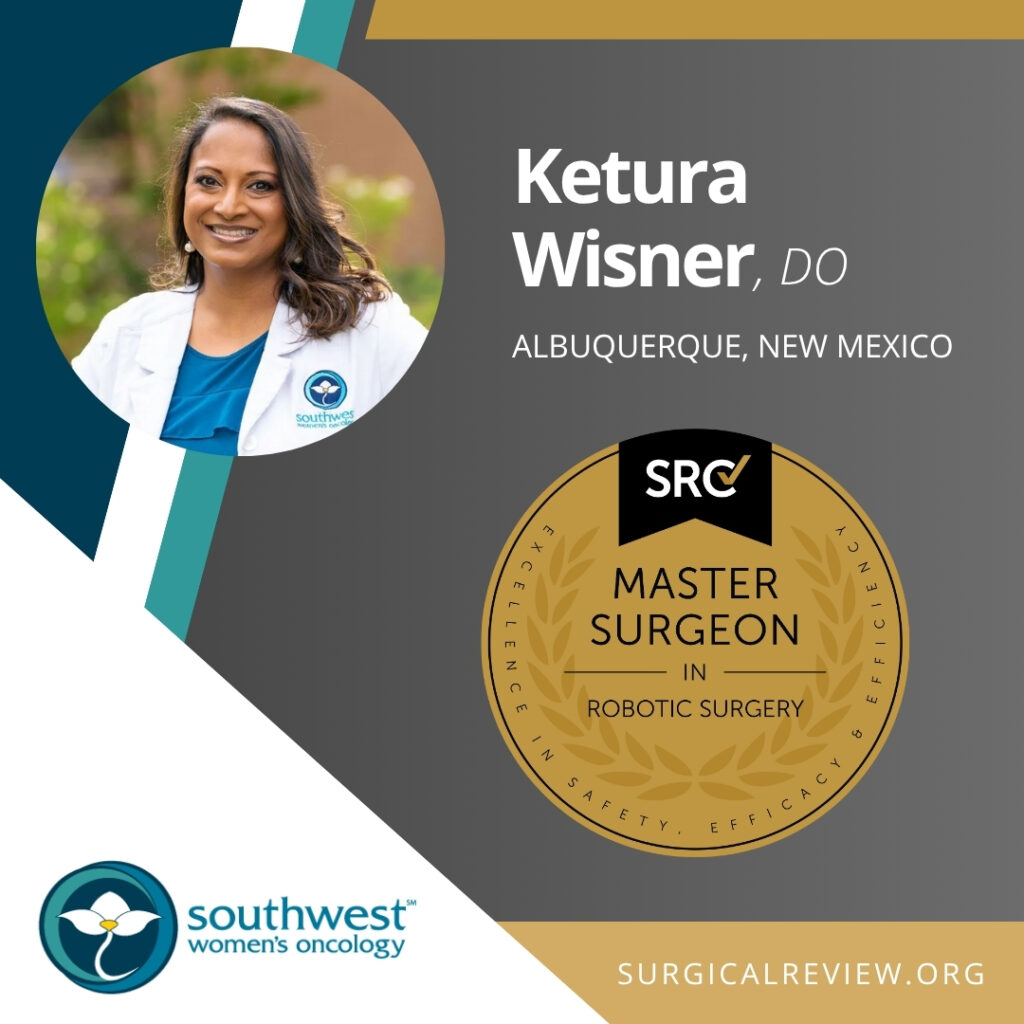 Ketura Wisner, DO has been accredited as an SRC Master Surgeon in Robotic Surgery. Dr. Wisner practices at Lovelace Women’s Hospital and Southwest Women’s Oncology, Inc. in Albuquerque, New Mexico.
