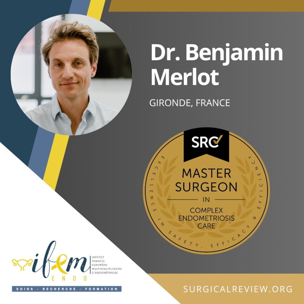 Dr. Benjamin Merlot has been accredited as an SRC Master Surgeon in Complex Endometriosis Care. Dr. Merlot practices at IFEMEndo: Institut Franco-Européen Multidisciplinaire d’Endométriose in Gironde, France.