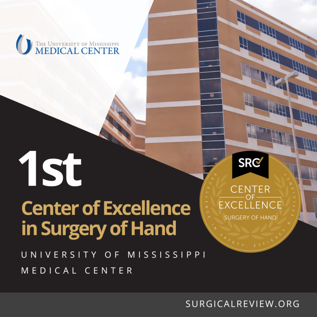 The University of Mississippi Medical Center in Jackson, Mississippi has achieved SRC accreditation as the first Center of Excellence in Surgery of Hand. Part of the university’s academic medical center, the Jabaley-Songcharoen Center for Hand, Upper Extremity and Nerve Surgery is a high-volume and high-acuity center for hand and upper extremity pathology. The center specializes in a multitude of treatments for children and adults, from carpal tunnel to complex diseases and injuries of the hand and upper extremities.
