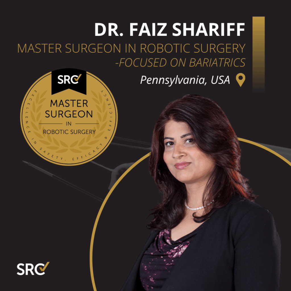 Dr. Faiz Shariff, MD, FACA, FASMBS is a metabolic and bariatric surgeon specializing in robot-assisted surgery to provide her patients with minimally invasive surgical options and improved patient outcomes. Practicing at WellSpan York Hospital in York, Pennsylvania, Dr. Shariff is passionate about helping her patients lead healthier lives and improving not only their physical health, but their overall well-being through increased confidence and quality of life. In 2023, Dr. Shariff became SRC-accredited as a Master Surgeon in Robotic Surgery.